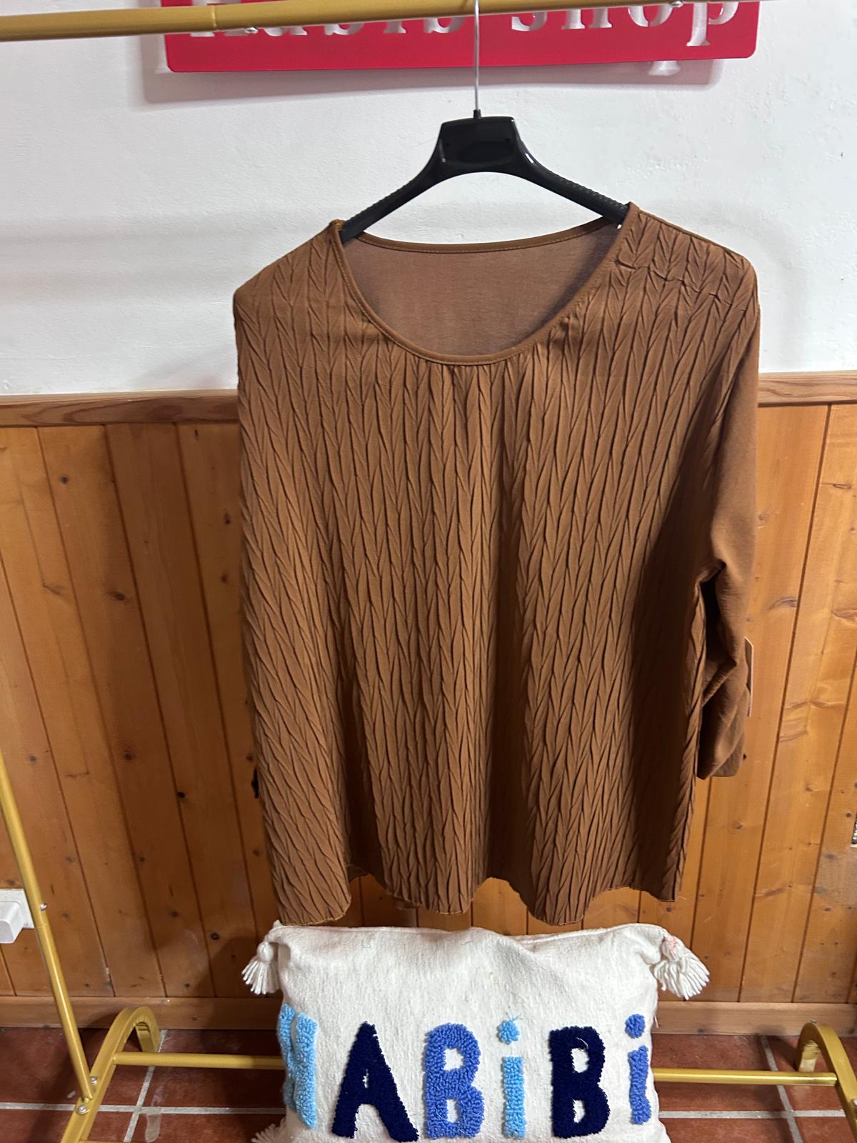 Camiseta de tela dibujo delantero lisa por atras , manga larga y se puede recoger la manga,