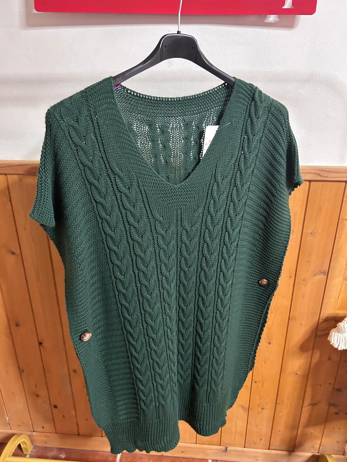 Chaleco lana suave con abertura en los laterales y dos botones al los lado. diseño con trenzones.