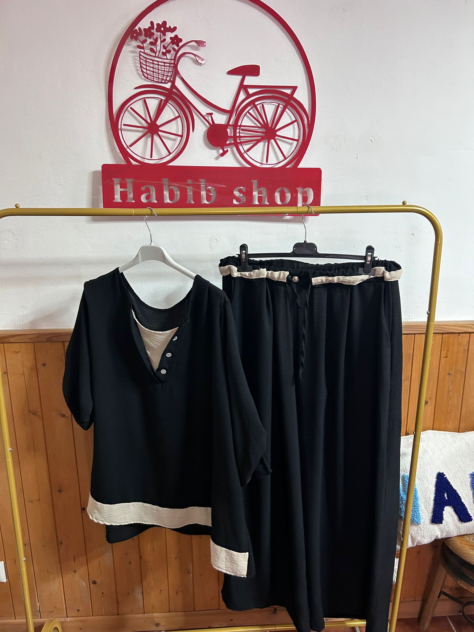 conjunto 2 piezas negro y beig, tejido fino para entre tiempo talla unica desde una 48 a 56 perfectamente yo uso 54 sienta muy bien