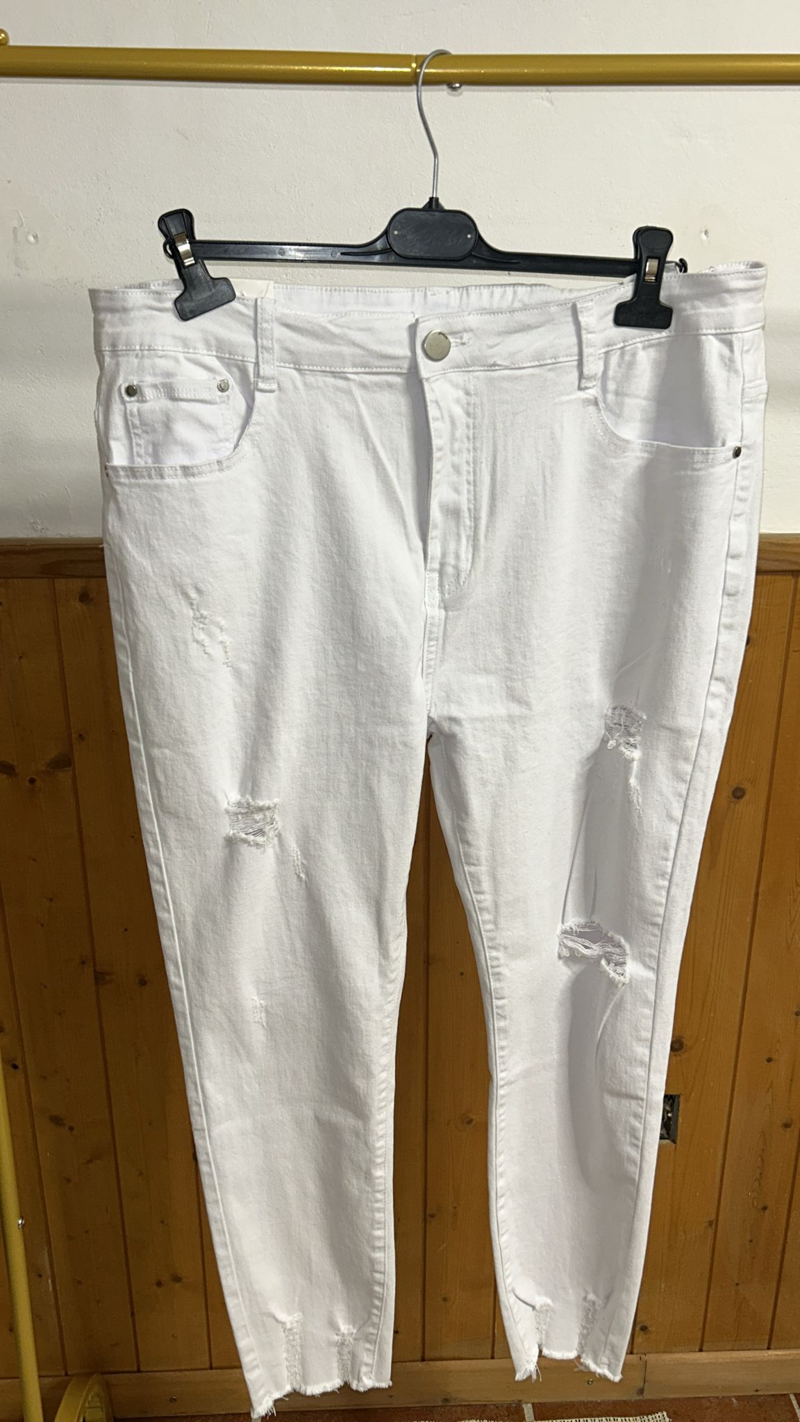 Pantalón vaquero blanco roto talla grande coger una talla menos