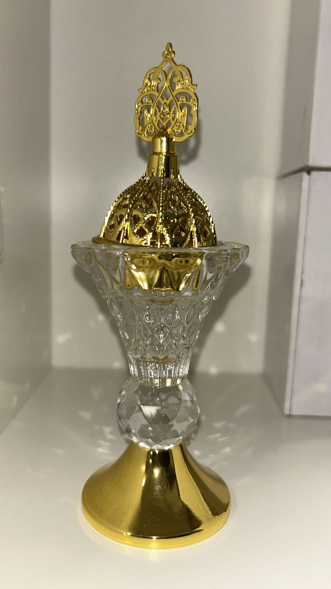 Quemador de cristal para incienso Oud se utiliza con carboncillo.