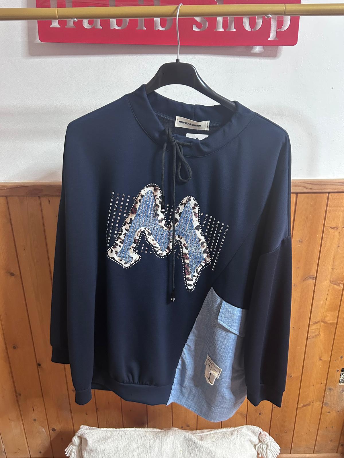 Sudadera con letra M  en vaquero ,bolsillo vaquero super original. Neopreno fino