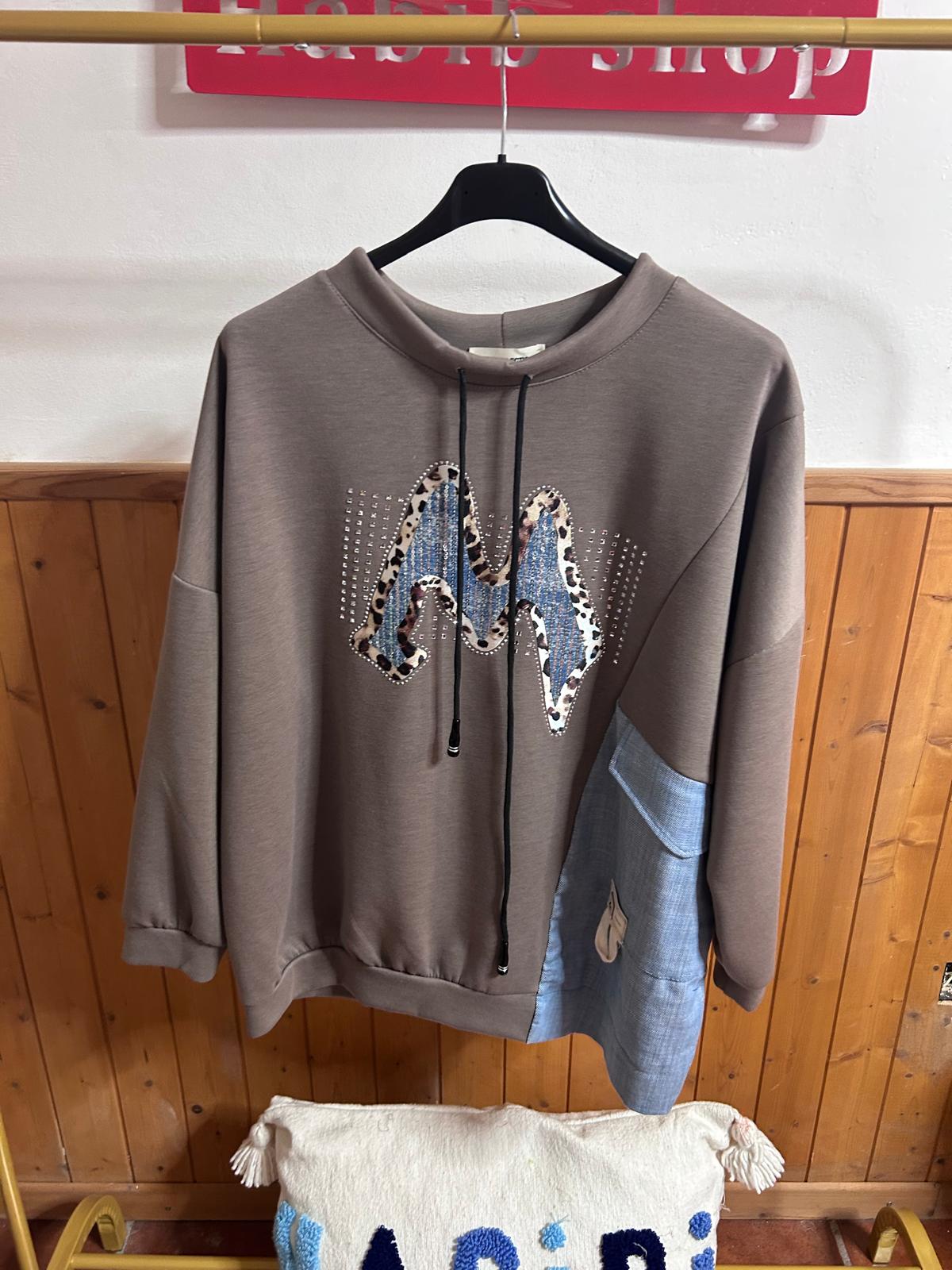 Sudadera con letra M  en vaquero ,bolsillo vaquero super original. Neopreno fino