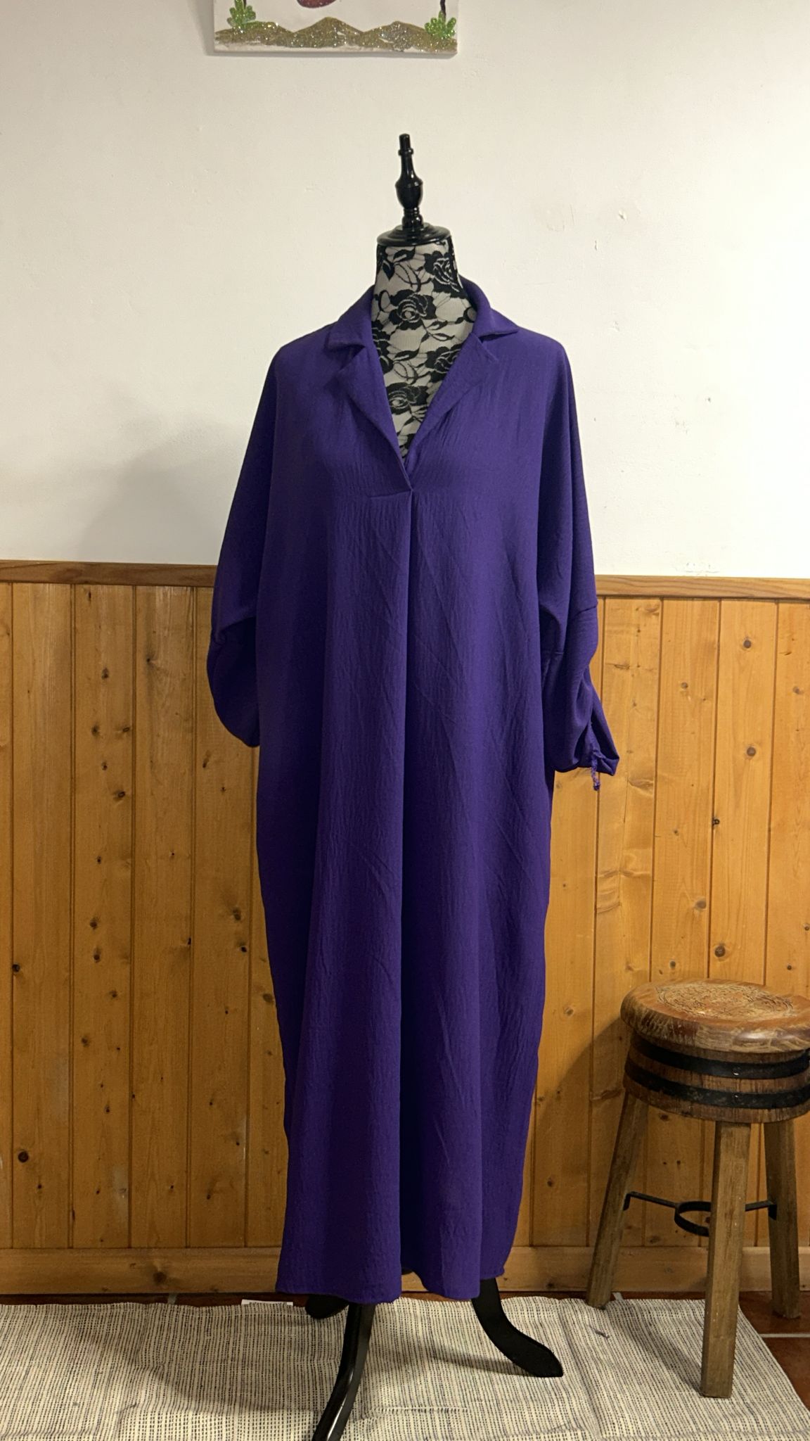 Vestido crep morado manga larga y se puede recoger talla única desde 48 hasta 56