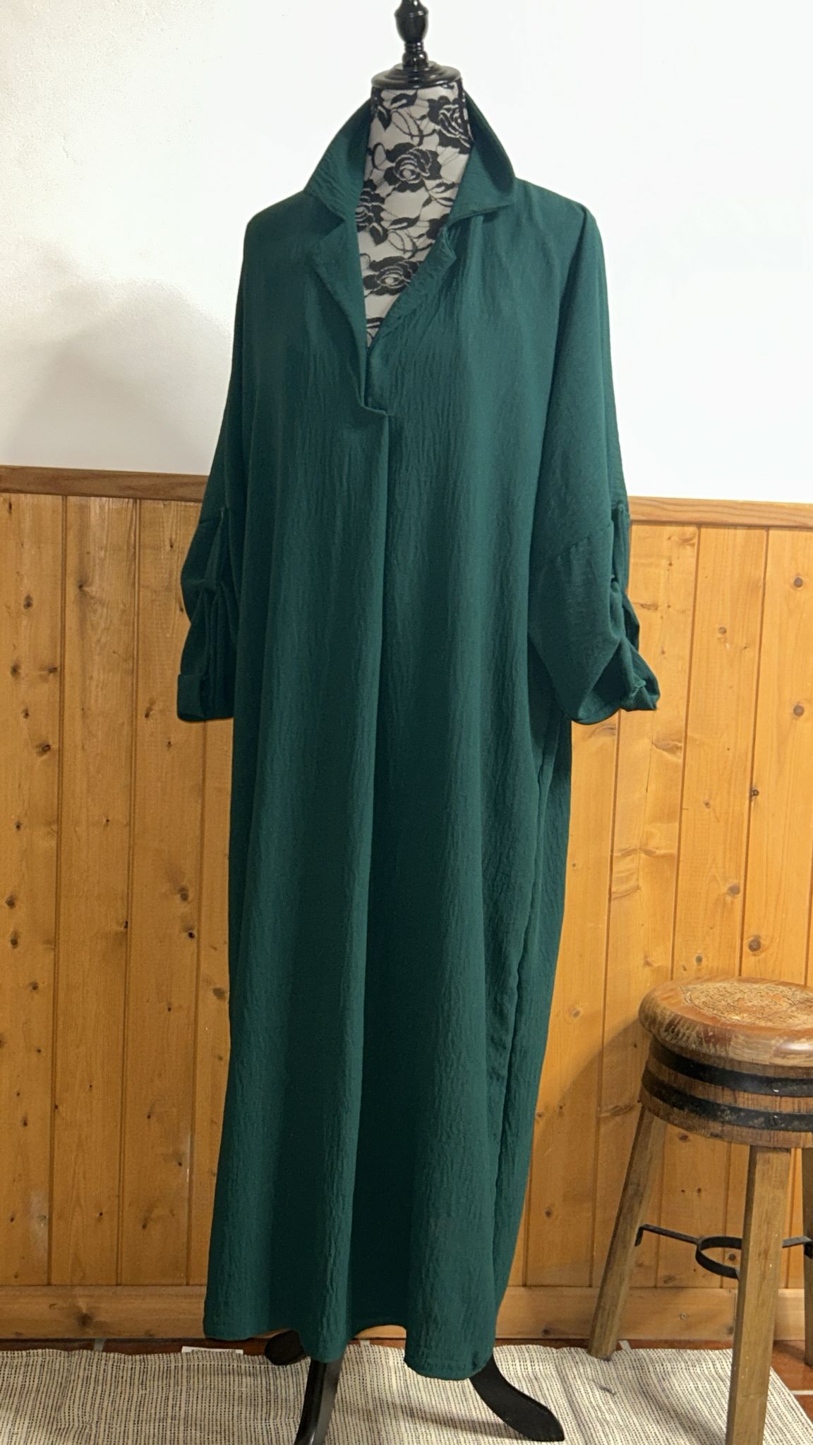 Vestido crep verde manga larga y se puede recoger talla única desde 48 hasta 56